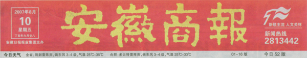 《安徽商报》报头《安徽商报》报道新闻页面截图