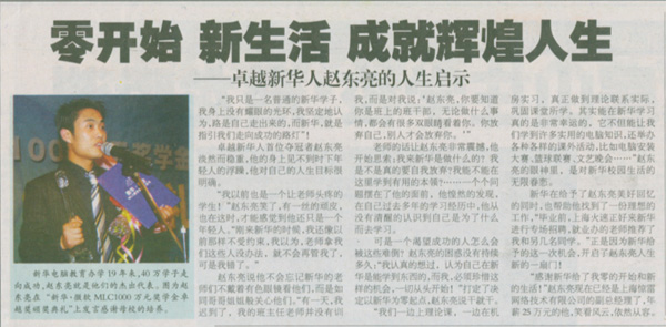 8月20日,《合肥晚报》报道:“零开始 新生活 成就辉煌人生——卓越新华人赵东亮的人生启示”,敬请关注!