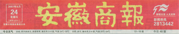 《安徽商报》报头《安徽商报》报道新闻页面截图