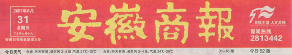 《安徽商报》报头《安徽商报》报道新闻页面截图