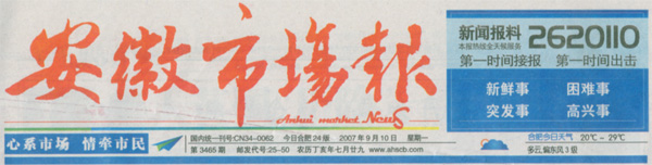《安徽市场报》报头《安徽市场报》报道新闻页面截图