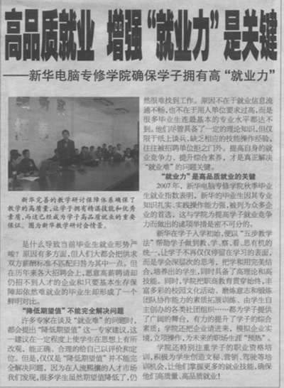 9月20日,《合肥晚报》报道:“高品质就业 增强‘就业力’是关键——新华电脑专修学院确保学子拥有高‘就业力’”,敬请关注!