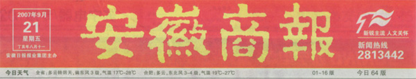 《安徽商报》报头《安徽商报》报道新闻页面截图