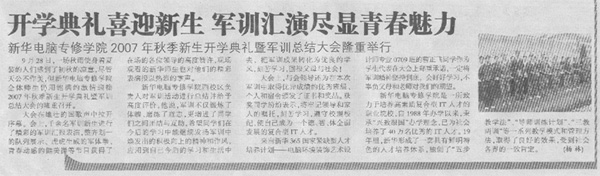 10月11日,《安徽市场报》报道:“开学典礼喜迎新生 军训汇演尽显青春魅力——新华电脑专修学院207年秋季新生开学典礼暨军训总结大会隆重举行”,敬请关注!