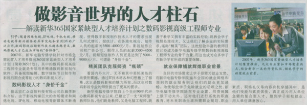 10月15日,《合肥晚报》报道:“做影音世界的人才柱石——解读新华365国家紧缺型人才培养计划之数码影视高级工程师专业”,敬请关注!