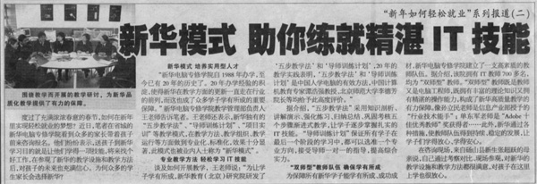 2月25日,《合肥晚报》报道:“‘新年如何轻松就业’系列报道(二)——新华模式 助你练就精湛IT技能”,敬请关注!