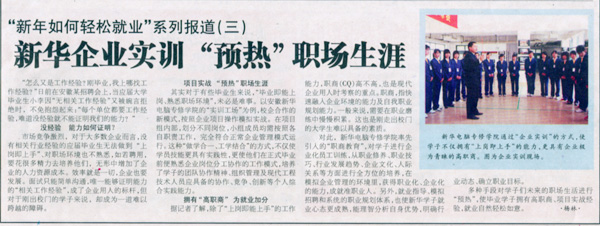 > 《合肥晚报》报道:新华企业实训 “预热”职场生涯