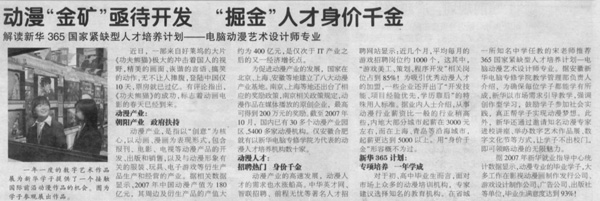 > 《安徽商报》报道:动漫“金矿”亟待开发 “掘金”人才身价千金