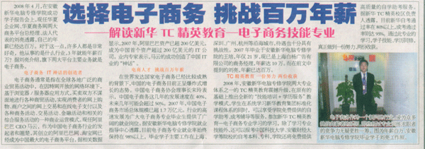 《安徽商报》报道:选择电子商务 挑战百万年薪