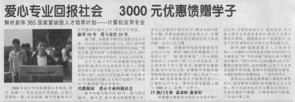 爱心专业回报社会 3000元优惠馈赠学子——解析新华365国家紧缺型人才培养计划—计算机应用专业