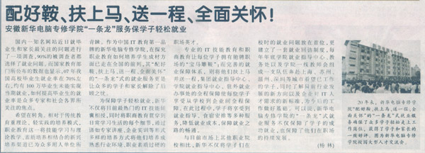 《安徽商报》报道:配好鞍、扶上马、送一程、全面关怀!