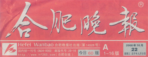 《合肥晚报》报头 《合肥晚报》报道新闻页面截图
