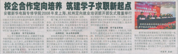 《合肥晚报》报道:校企合作定向培养 筑建学子求职新起点
