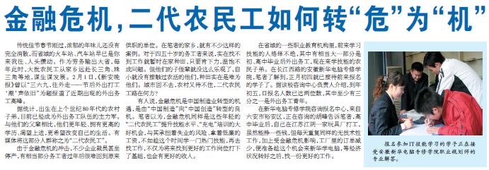 2月5日,《合肥晚报》报道:“金融危机,二代农民工如何转“危”为“机””,敬请关注!