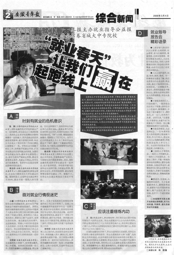 > 安徽青年报报道:“就业春天”让我们赢在起跑线上