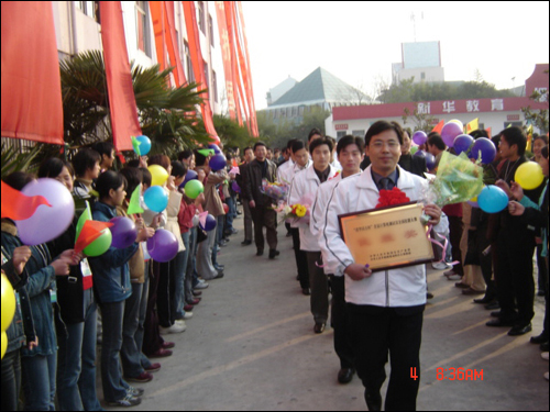 同学们夹道欢迎全国计算机技能大赛载誉归来的队员们