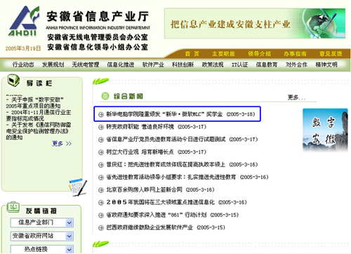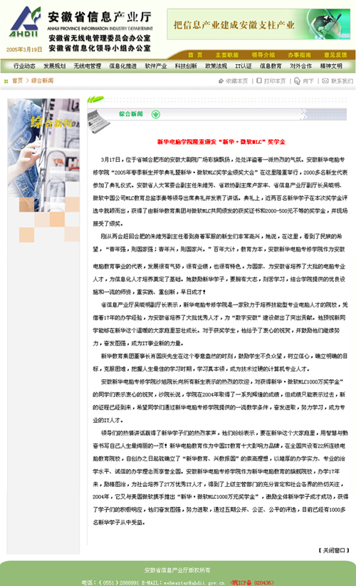 3月18日,省信息产业厅网报道了“新华电脑学院隆重颁发‘新华·微软MLC’奖学金”的消息,并做了详细报道,敬请关注!