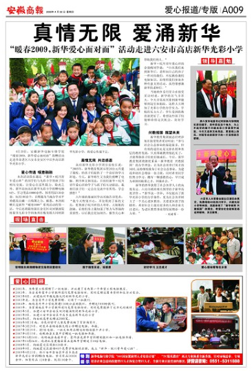 真情无限 爱涌新华——‘暖春2009,新华爱心面对面’活动走进六安市 高店新华光彩小学