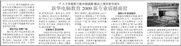 > 《安徽市场报》报道:新华电脑教育2009新专业震撼面世