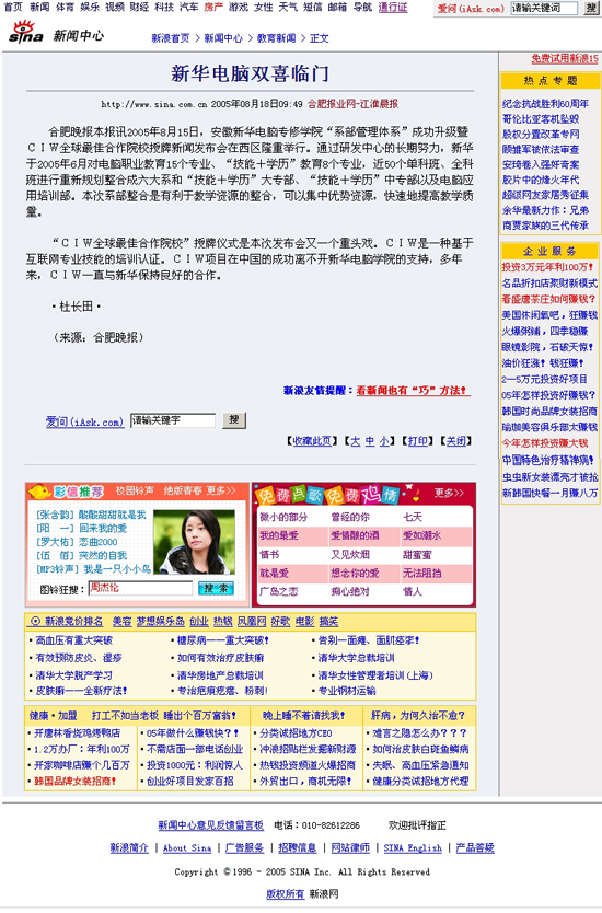 新浪网链接:http://news.sina.com.cn/e/2005-08-18/09496724167s.shtml