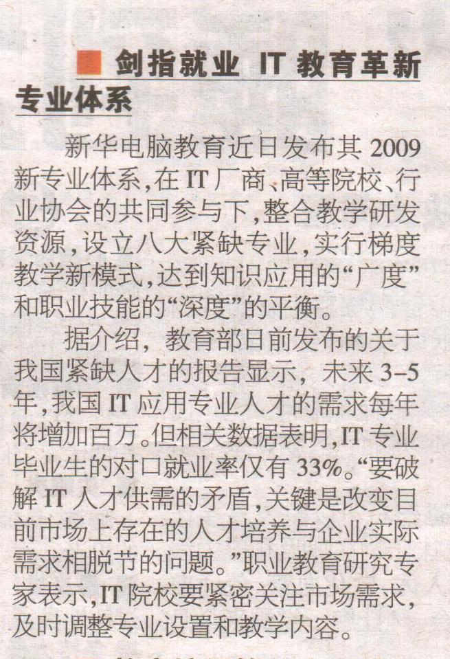 > 《参考消息》报道:剑指就业 IT教育革新专业体系