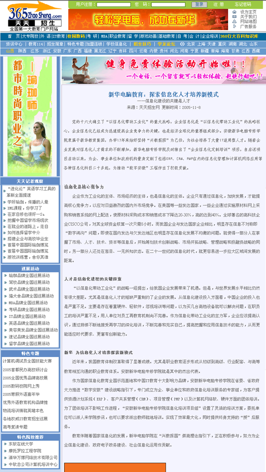 11月8日,“天天招生网”报道“新华电脑教育:探索信息化人才培养新模式——信息化建设的关键是人才”的新闻,并做了详细报道,敬请关注!