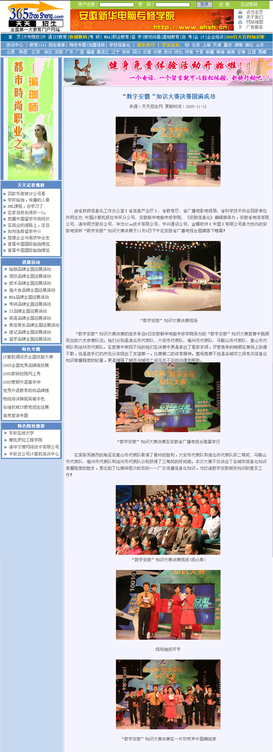 11月12日,“天天招生网”报道:“‘数字安徽’知识大赛决赛圆满成功”的新闻并做了详细报道,敬请关注!