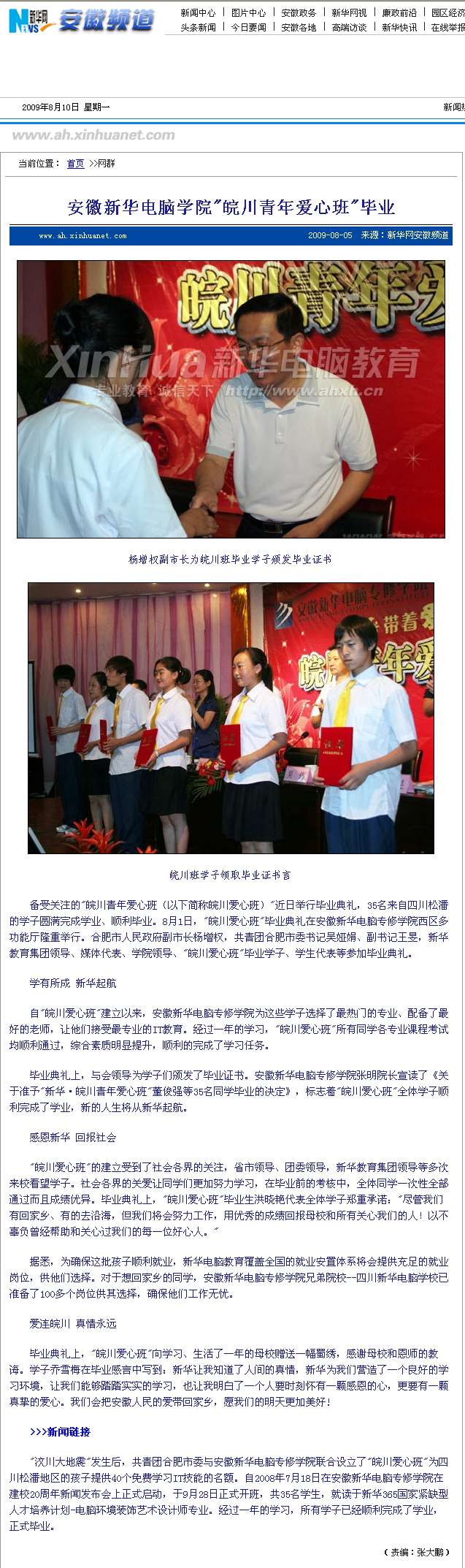 > 新华网特别报道新华皖川爱心班顺利毕业