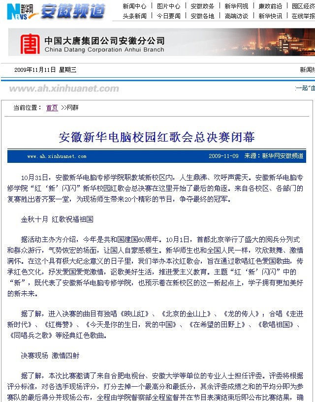 安徽经视报道:安徽新华电脑专修学院20周年校庆