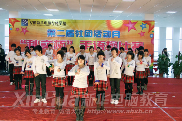安徽新华电脑专修学院(中国电脑学校第一品牌、中国电脑培训NO.1)职教城新校区电商务系的沈小涛同学说,此次手语操比赛,不仅使我们从手语这种肢体语言中体验到聋哑人生活的艰辛,同时也激励了我们要怀有感恩之心面对生活、面对学习中遇到的困难。
