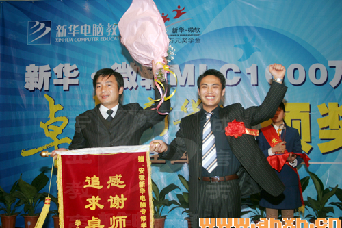 2006年3月4日上午,“新华·微软MLC1000万元奖学金”卓越奖颁奖典礼在安徽新华电脑专修学院西区礼堂隆重举行。省政协副主席赵培根、省信息产业厅副厅长王洵、省信息产业厅信息化推进处处长罗荣选、安徽省大中专就业指导中心主任鲍勇、微软MLC(中国区)教育总监李秦、安徽新华电脑专修学院院长沙旭等领导出席了本次颁奖典礼。获得最佳追求奖、最佳专业奖、最佳开拓奖、最佳成就奖,和卓越奖的11位新华学子也从全国各地齐聚合肥登台领奖。
