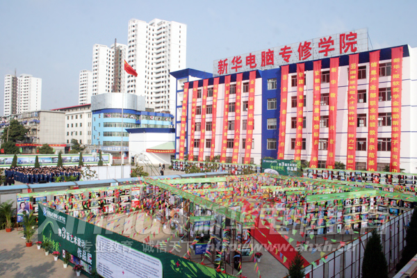 新华办学22年,与国家工业和信息化部、教育部等主管部门及微软、Adobe等知名IT公司携手,创造让学子满意和尊重的教育服务。图为由Adobe公司支持的校园数字艺术设计作品展现场