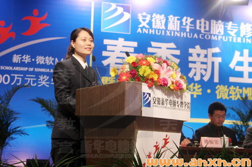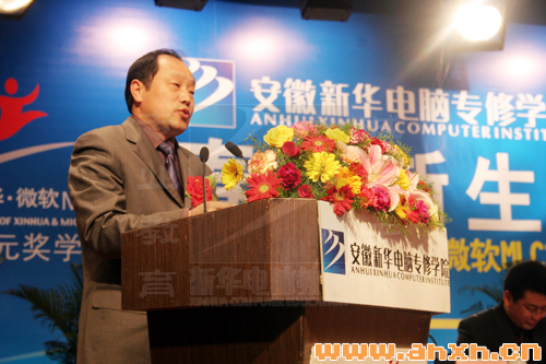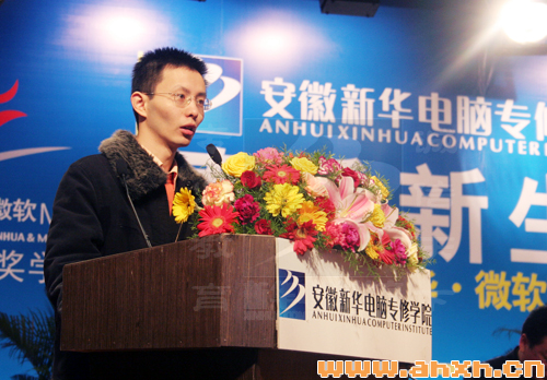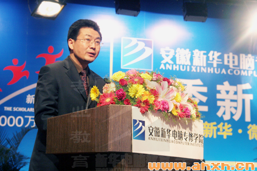 安徽新华电脑专修学院沙旭院长向所有新生表示的热烈的欢迎,对获得“新华·微软MLC1000万奖学金”的同学们表示衷心的祝贺,沙院长说,学院在过去的发展中取得了一系列辉煌的成绩,但成绩只能表示过去,新的征程已经到来,希望同学们通过新华电脑专修学院提供的一流教学条件,奋发进取,努力学习,成为专业的IT人才。