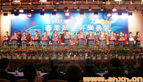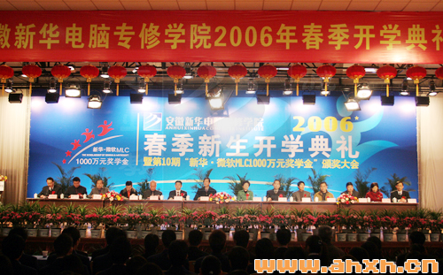 安徽新华电脑专修学院06年春季新生开学典礼暨第十期“新华·微软MLC1000万奖学金”颁奖大会隆重召开