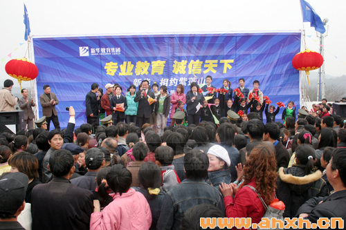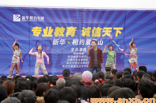 今年3月18日正值农历二月十九,是紫蓬山传统庙会。紫蓬山旅游开发区管委会安排了丰富多彩的文艺演出活动。为了把传统庙会注入新的时代气息,答谢社会各界历年来对新华教育的支持,新华教育集团所属的安徽新华电脑专修学院、安徽新东方烹饪学院、安徽万通汽车专修学院、安徽东方巴黎服装艺术专修学院联合举办了“专业教育诚信天下,新华相约紫蓬山”大型文艺演出活动。