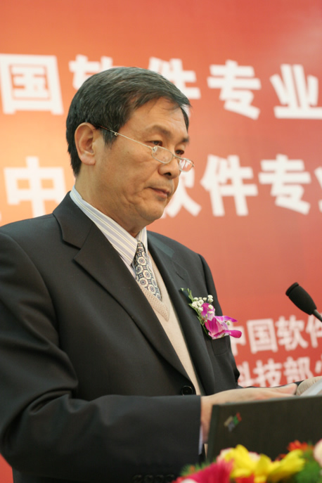 中国软件行业协会陈冲理事长、科技部火炬中心裴夏生副主任为“中国软件专业人才培养职业教育项目”揭牌