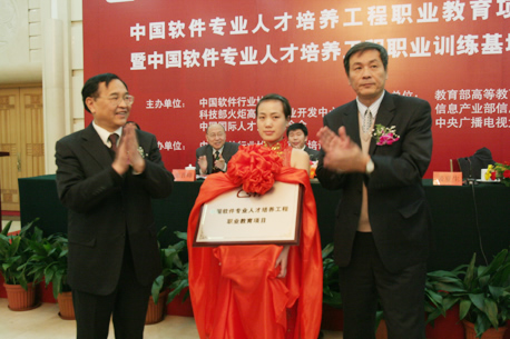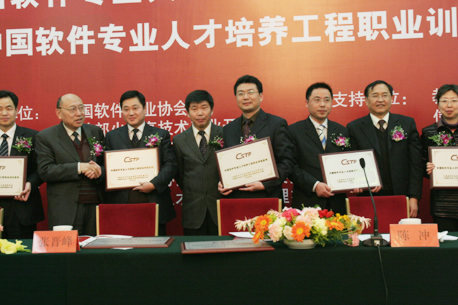 会上,出席会议的各位领导共同为“中国软件专业人才培养工程职业教育项目”和“全国软件人才就业服务平台”揭牌,这标志着中国软件专业人才培养工程职业教育项目在全国范围正式启动。CSTP职业教育项目作为中国软件专业人才培养工程的重要组成部分由职业教育管理办公室具体负责,项目将采取全国特许连锁管理的运营模式,对合作院校或社会培训机构提供统一的设计理念、统一的管理运营、统一的专业课程要求、统一的师资培训、统一的标准考试、统一的教材资料及就业保障。