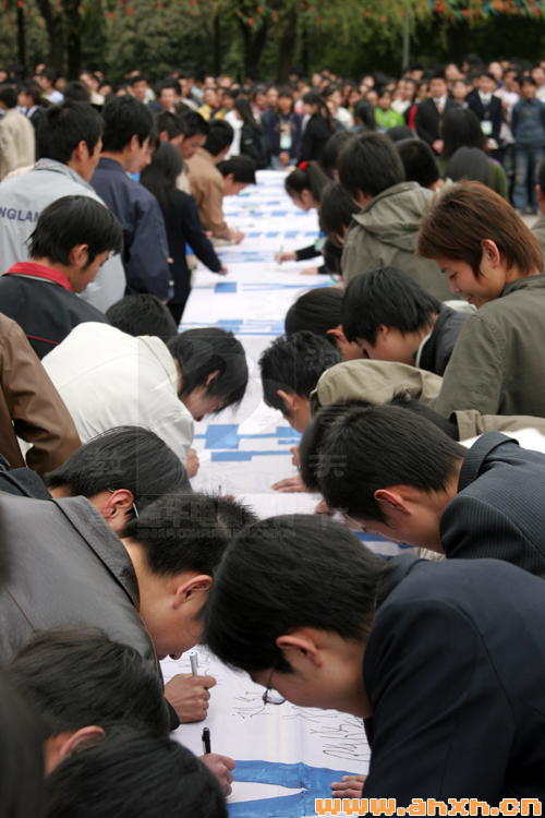 办学18年来,安徽新华电脑专修学院一直致力于打造绿色的校园、文明的校园、IT的校园,值文明礼貌月之际,学院南区开展了“讲文明话,做文明事,争当文明人”万人签名活动,此举旨在展现新华学子的精神文明风貌,倡导文明言行,营造良好的学习和生活环境。