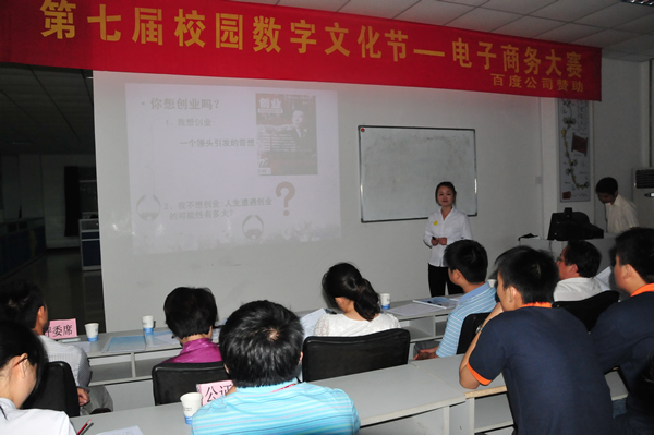 2011年5月10日下午,安徽新华电脑专修学院电子商务大赛总决赛在365西校区电子商务实训中心圆满举行。来自365西校区百度经理人班的王顽、赵仁强、姚利平、耿意所组成小组,以88.8分的成绩从所有参赛队伍中脱颖而出,获得第一名。