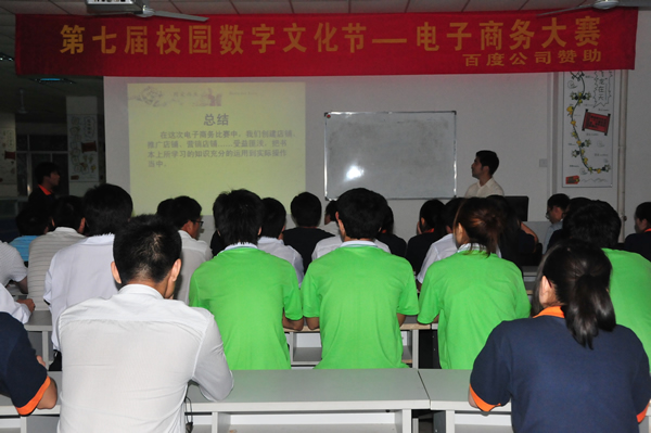 下午3点10分,在校教务处金主任的宣布下比赛正式开始。9组参赛选手分别就“网络营销策划、网店筹建与管理、电子商务应用”等方面发表了精彩演说。随后,由企业和校领导组成的评委团就每组选手的营销方案进行现场点评和评分。