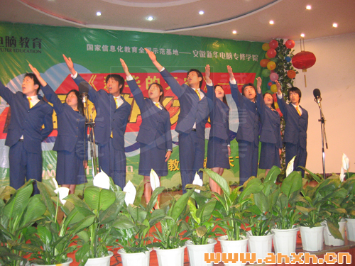 4月21日下午,在安徽新华电脑专修学院西区的多功能大厅内不时传出激昂向上的歌声,来自学院各区的代表队正在这里举行首届“新华的天空”校歌PK大赛总决赛。选手们个个意气风发、精神抖擞,整齐的服装、同一的口号,无不向评委和同学们召示着——我们是最优秀的。