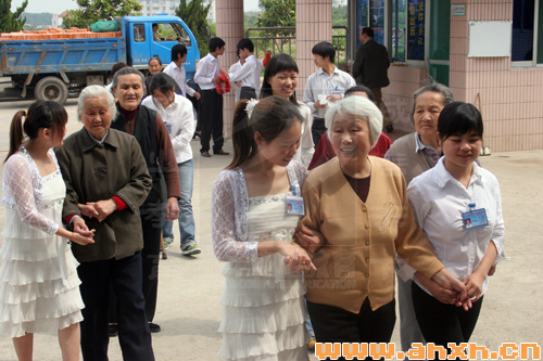 同学们到来让他们不再忧伤于儿女远离的凄凉