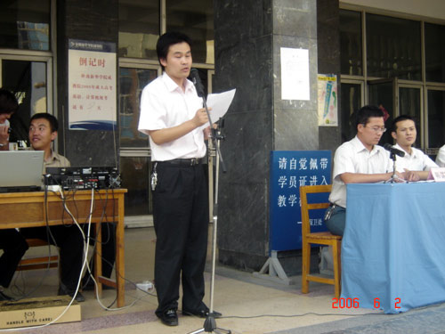 学管中心主管宣读军训汇报表演正式开始