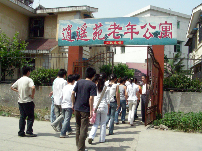 2006年6月10日,是一个阳光灿烂的周末,新华电脑专修学院E露文学社的同学们带着一颗诚挚的心,走进了合肥逍遥苑老年公寓,为老人擦玻璃、扫地、陪伴老人聊天,以使老人不再孤单,生活更加丰富多彩。