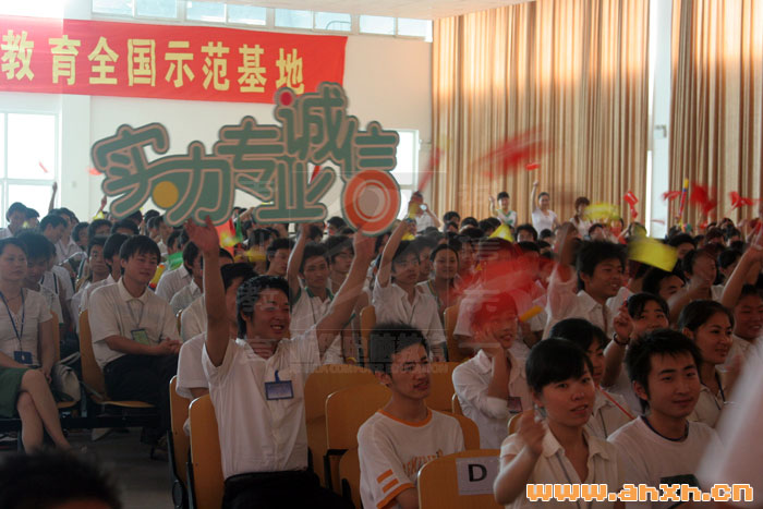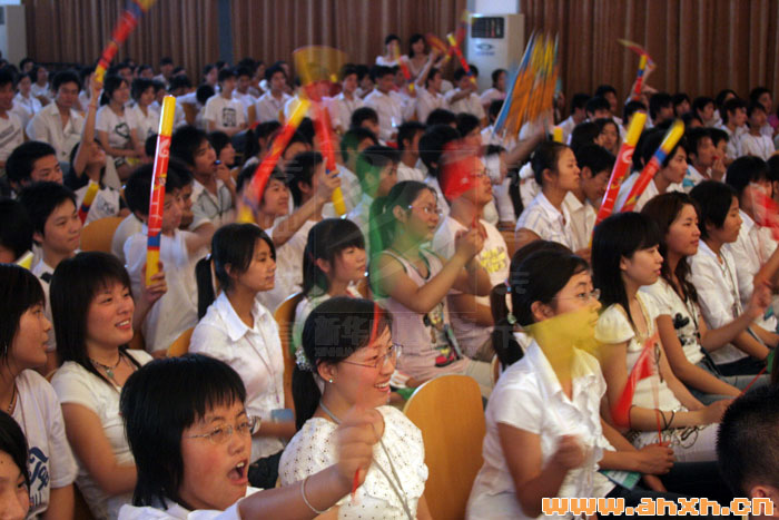 安徽新华的老师们和台下的学生一起互动,台上台下联成一体