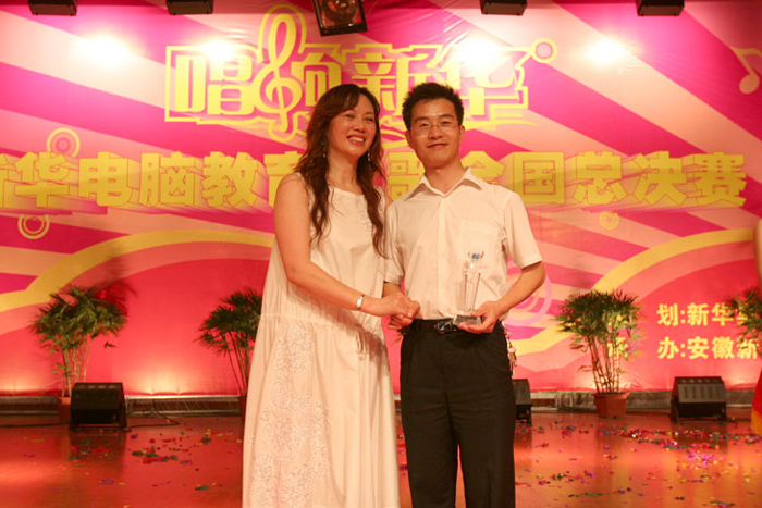 安徽省音乐家协会理事、国家一级演员陈蕾为团体三等奖获得者南京新华颁奖