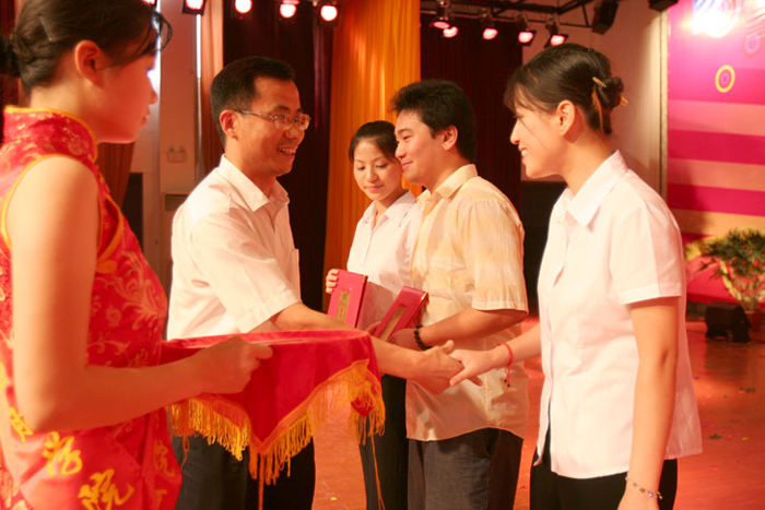 安徽新华电脑专修学院副院长束开俊为学生组一等奖获得者江西选手颁奖