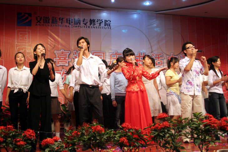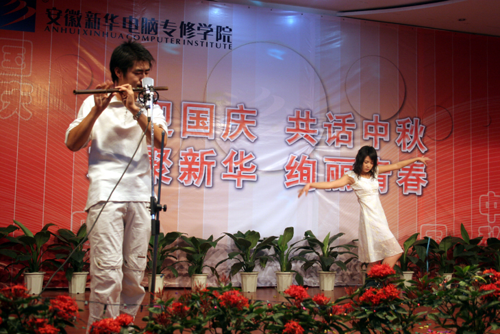 晚会上,安徽新华电脑专修学院何扬总监用诙谐幽默的语言,鼓励同学们要多参加这种文艺晚会,充分发挥自己的各种特长,做全面发展的新华人。