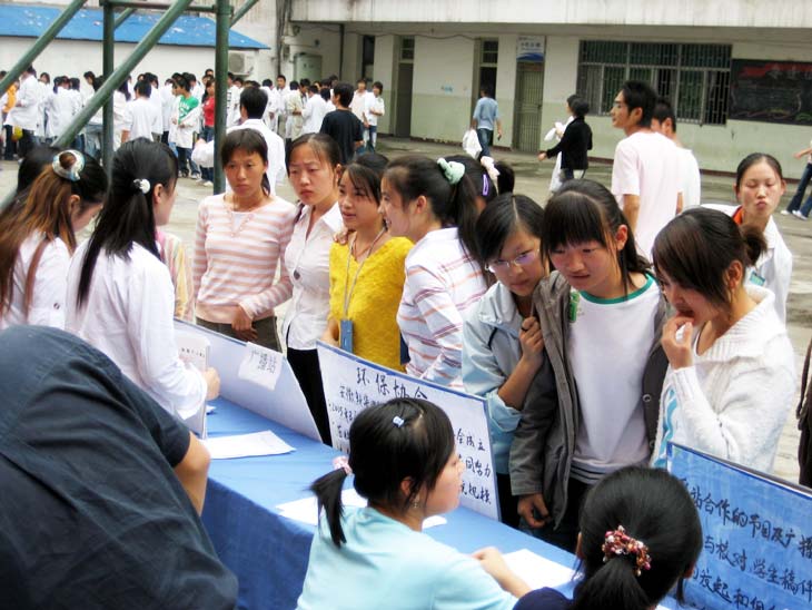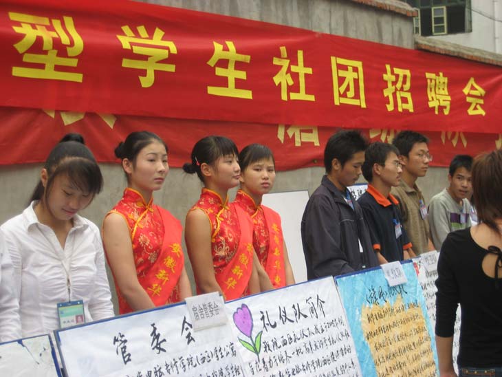 10月17日上午,安徽新华电脑专修学院西区学生社团大型招聘会在西区东方操场热烈举行。招聘会现场人头攒动,咨询的同学络绎不绝,气氛十分活跃。参加此次招聘的学生社团共有7个,分别是院西区学生会、广播站、语言协会、文学社、礼仪队、学会公寓自我管理委员会、校卫队等。现场共招聘一百多人。此次招聘会的开展既为西区广大学生提供了一个展示自我的良好平台,同时也为学院西区学生社团的发展注入了更多的生机与活力,使学生社团的发展步入了一个新的台阶。