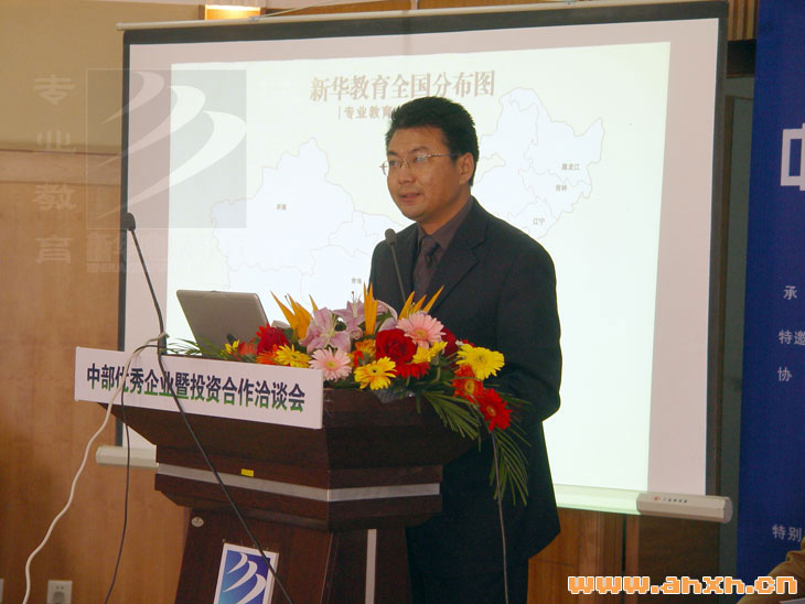 新华教育集团沙旭副总经理代表新华集团对新华集团特别是教育及地产业进行了精彩介绍。引起了与会人员的高度关注,专家组和投资机构对新华集团的教育产业的规模、发展模式及广阔的发展前景给予了高度评价,并有企业与沙旭经理现场进行了沟通交流,表示了合作意向。经由安徽省人民政府研究室、中国风险投资研究院和境外有关投资机构专家共同评定,新华集团被评为“2006中国中部科技创新与风险投资高层发展论坛最具投资价值的项目”。据了解,新华集团是唯一获此殊荣的教育与房地产企业。